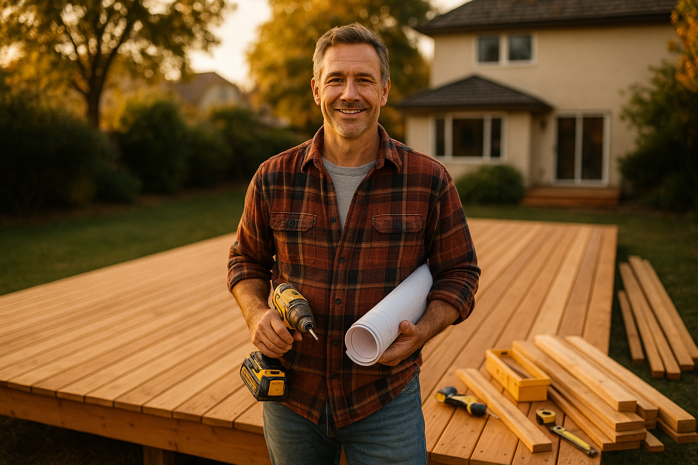 Our pros install the footings and framing — the tough stuff — ensuring a safe, level, and code-compliant foundation. Then you take over to install the decking and railing at your own pace, saving thousands and building it with pride.